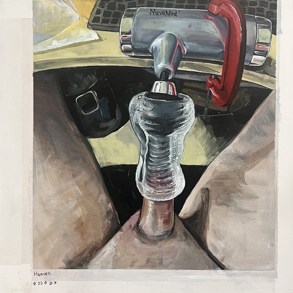 Macheted In Massage Parlour, acrylic on canvas, April 2025